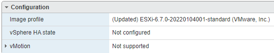 [root@esxi:~] esxcli software profile update -p ESXi-6.7.0-20220104001-standard -d https://hostupdate.vmware.com/software/VUM/PRODUCTION/main/vmw-depot-index.xml